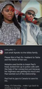 Juls alleged that the situation reached a climax where Paul had to bow out of the relationship to save his life by fleeing to Canada. The source also claimed that the union of Hon. Natasha and Paul was blessed with a child.