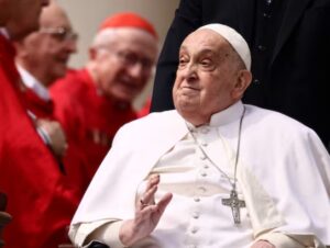 He did, however, make a brief appearance at Saint Peter’s on Saturday as he greeted visitors.