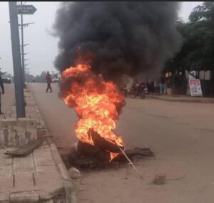 A suspected motorcycle snatcher, was set ablaze by a mob along Ibrahim Kashim road in Makurdi, the capital city of Benue on Tuesday.