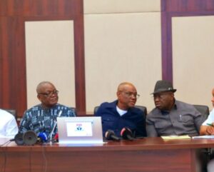 Following the nearly three-hour meeting, a communiqué was issued, read by former Benue State Governor, Samuel Ortom, who noted the members’ “collective commitment to the principles of equity, justice, inclusivity, and the rule of law”, describing them as “values upon which the PDP was founded and upon which its survival depends.”