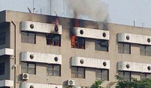 “The fire outbreak is limited to Section C of the building and is currently being attended to by emergency officials,” the office said.